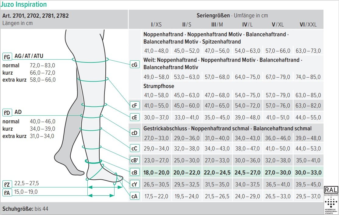 Juzo Inspiration anatomisch geformten medizinischen Kompressionsstrümpfe geben Ihren Beinen unauffällig den medizinisch erforderlichen Halt. Kompressionsstrümpfe für jede Gelegenheit - Schenken Sie Ihren Beinen mehr Leichtigkeit! Schwere und schmerzende Beine müssen nicht sein - Kompressionsstrümpfe für Sie und Ihn. Nur medizinische Kompressionsstrümpfe wie Juzo Inspiration, die das RAL-Gütezeichen tragen, garantieren den medizinischen Nutzen.